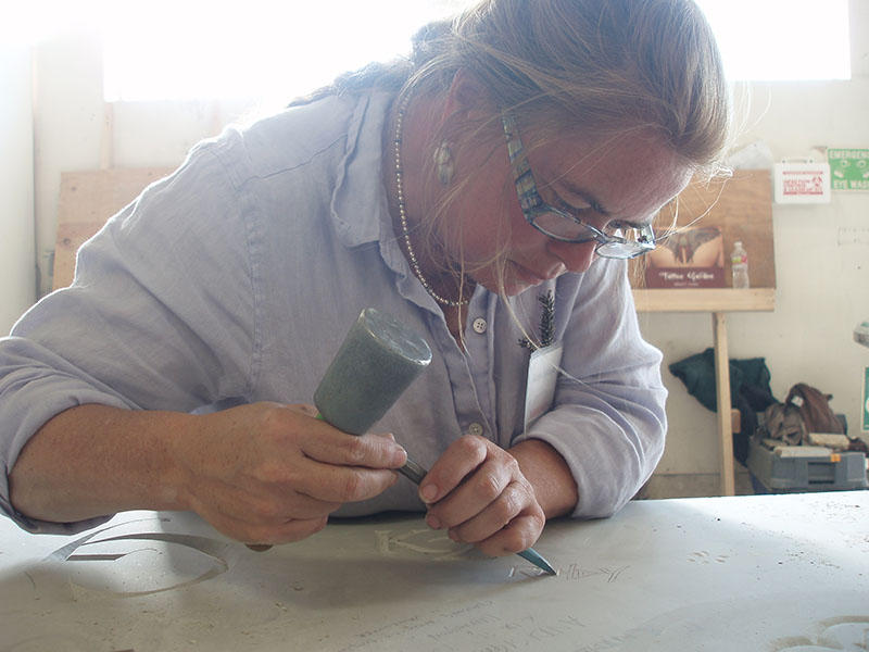 Karin Sprague is among a small group of artists who still etch stone memorials by hand. Photo courtesy of Karin Sprague
